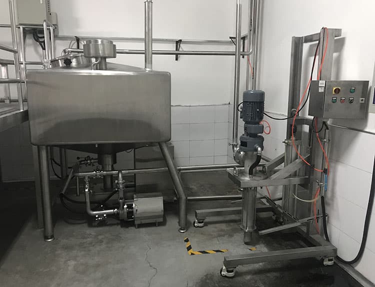 將一種或多種物料(水溶性固相、液相或膠狀物等)溶于另一種液相,并使其與水合成為相對(duì)穩(wěn)定的乳化液。廣泛適用于食用油類、粉類、糖類等原輔料的乳化混合,某些涂料、油漆乳化分散也使用乳化罐,尤其適用于某些難溶膠狀類添加劑如CMC、黃原膠等。