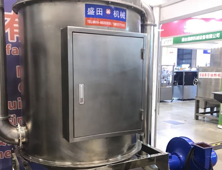 機(jī)器高速運(yùn)轉(zhuǎn)下活動刀盤與固定齒圈發(fā)生撞擊摩擦,物料通過與刀具之間的切割撞擊摩擦獲得粉碎。粒度大小可通過更換篩網(wǎng)獲得。需要產(chǎn)量高可選用此配置,此配置含粉碎主機(jī),除塵箱,高壓風(fēng)機(jī),旋風(fēng)出料,電箱。粉碎好的物料經(jīng)旋風(fēng)分離從出料口流出。粉塵在高壓風(fēng)機(jī)的作用下,進(jìn)入除塵箱,過濾回收再利用。