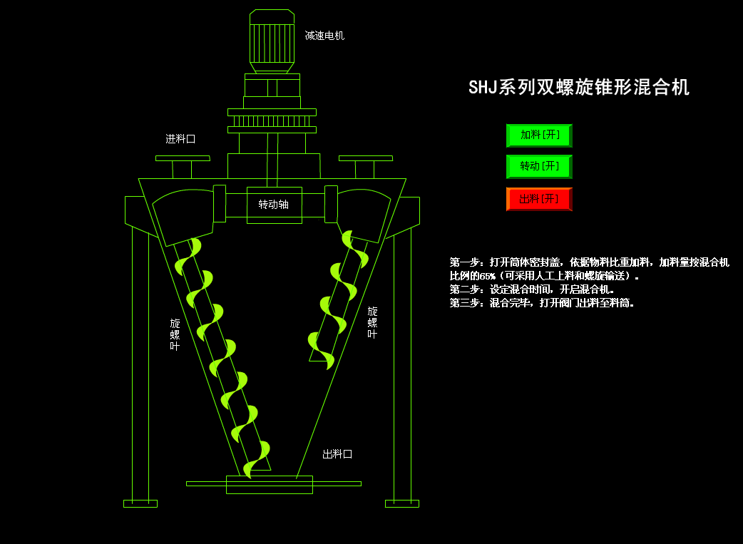| 型號 | 料筒 | 裝料容積 | 裝料重量 | 混合時間 | 物料粒度 | 電機(jī)功率 | 外形尺寸(長×寬×高) | 重量 |